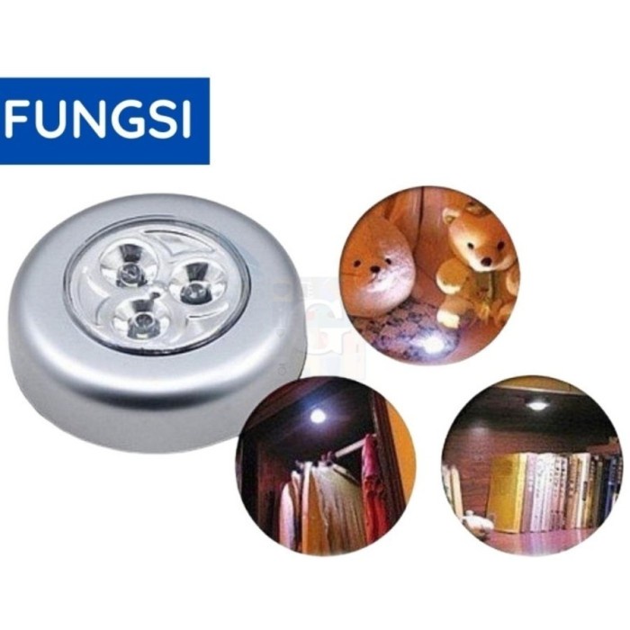 Bisa dipasang dimana saja indor dan outdor Dengan selfadhesive sticker, bisa ditempel di kayu. plastik, metal, kaca, dll 3 LED Tanpa kabel, aman, bisa untuk lampu emergency, bisa di taruh di tas, kantong, mobil, dll Menggunakan 3 AAA Battre (tidak termasuk dalam paket)