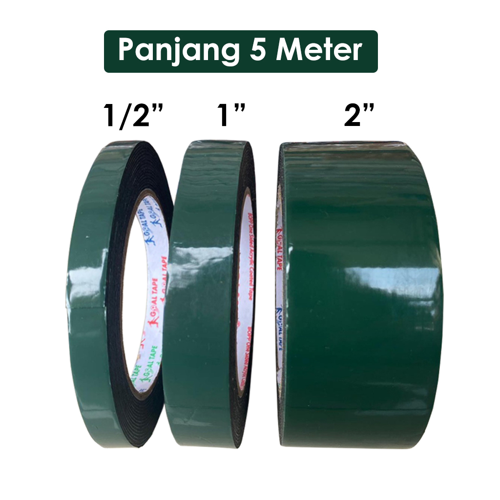 Lebar : 1/2 - 2 Inchi Panjang: 5 Meter Warna Foam : Hitam Warna Kulit : Hijau Digunakan Untuk Perbaikan Permanen, Untuk Permukaan Yang Tidak Rata, Baik Mobil, Mesin Maupun Rumah ( Indoor Ataupun Outdoor ) Tahan Panas Tinggi Mounting Serta Pemasangan Assesoris Di Mobil Memasang Poster Dan Berbagai Macam Keperluan Lainnya. Double Foam Ini Mampu Menempel Dipermukaan Dinding Dengan Baik