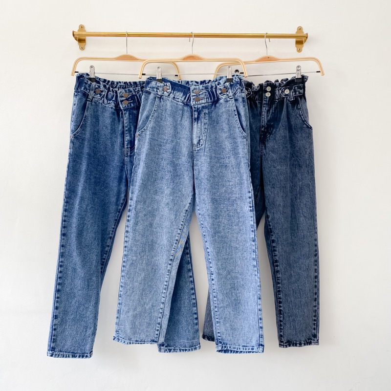 ⨠Matterial Jeans tebal dan g strechy ya dia boy friend jeans ⨠Bagian pinggang full karet ⨠Kancing dan sleting aktif ⨠Saku aktif kanan kiri dan belakang