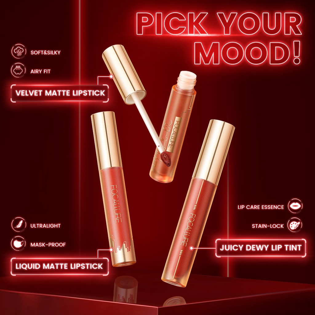 Focallure#MordenUrban Misty City mellow tint Velvet Matte Lipstick Airy Fit Moisturize High Pigmented Long Wear Soft Silky Easy To Blend [Misty Velvet Matte] Unique misty velvet texture, buttery soft and silky, easy to blend, with its soft-flocked applicator, melt on your lips with one swipe, creates an advanced misty velvet matte finish [Mellow Lips] High pigmented, can 360° full coverage for dark lips, giving your lips a mellow velvet matte finish at any angle, making your lips look plumper and more attractive [Airy & Moisturize] The velvet lipstick is added with moisture ingredients, moisturizing like a lip balm, adding moisture to the lips while coloring, the lips will not dry and will not show lip wrinkles; Lightweight like a feather, keep your lips breathable all-day [Long Wear] Unique color-locking technology and its perfect coloring power, making the shade close to the lips, not easy to fade, and keep the shade as rich as just applied throughout the day