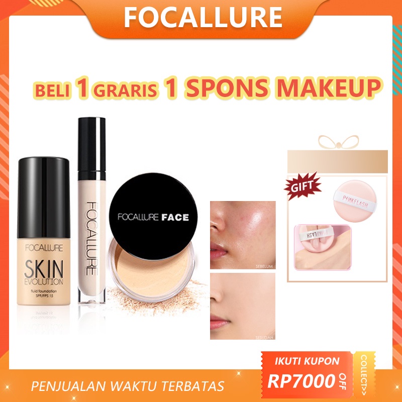 Video perkenalan produk FOCALLURE 3PCS Oil Control Face Makeup Set Face Foundation Looose Powder Concealer Beauty Sets. Sumber: Shopee.