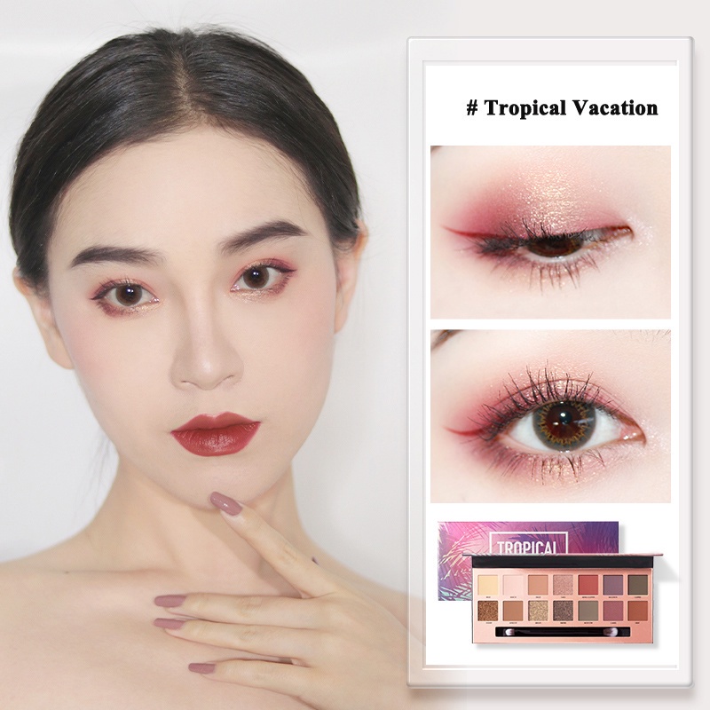 Features: *An Essential eye shadow collection featuring 14 shades,including neutral and berry tones. *Intense permanent palette,tropical vacation edition to create endless looks for daytime and evening. *Highly pigment,easy-to-blend formula. *11 Matte shades,3 metallic. *Dual-side soft bristle brush.