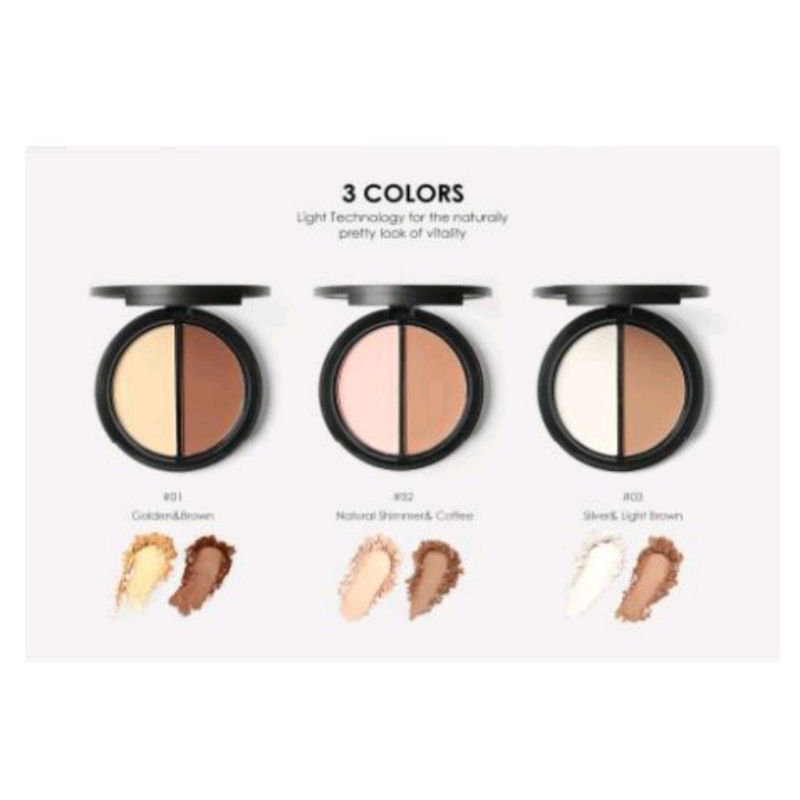 Highlight Bronzing Dou Powder Palette Highlighter and Bronzer Face Powder Velvet Whitening Texture in a Palette