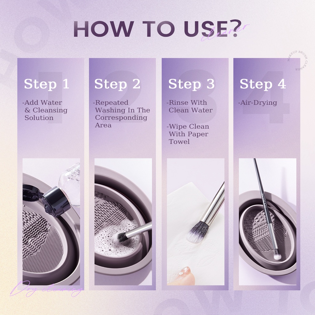 [Makeup Cleaning Bowl] One-second quick folding multifunctional cleaning bowl, is space-saving, and can be wet used for cleaning makeup brushes, sponges, powder puff, and so on.