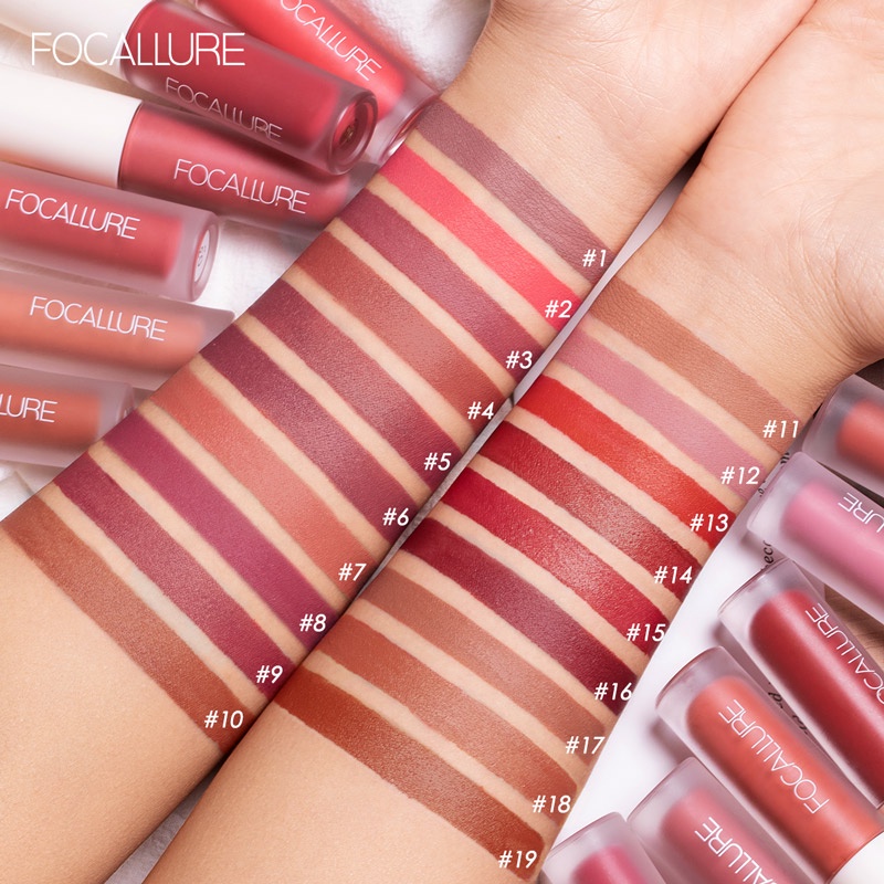 FOCALLURE Newest STAYMAX MATTE LIPINK glide over your lip as aqua for kissably-soft smooth with a lightweight formula. Featuring with an ultra-matte finish but non-dry. Longstay with highly pigmented in buildable and water-proof wear. All-day moisturize and nourish your lip with jojoba seed oil , carrot extract and vitamin E. Built-in curved applicator effecting in more precision to fit your lip.