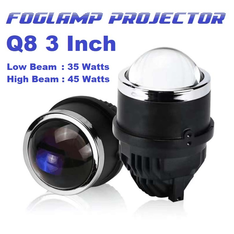 Foglamp Projector Q3 Lensa LED Projie BiLED Lampu Kabut Mobil 45 Watt 3 Inch Inchi Inci F7