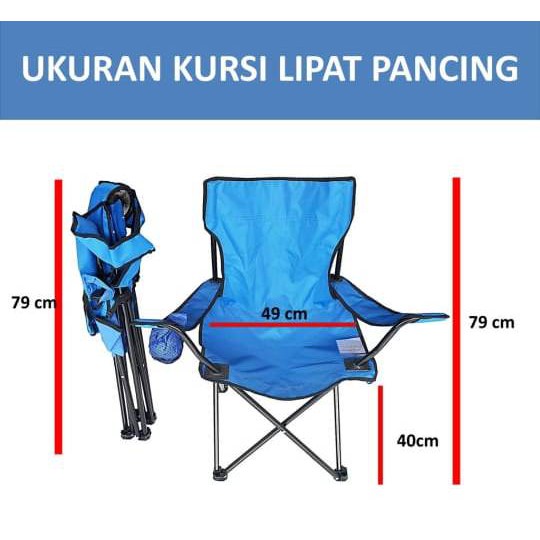 Folding Chair/Kursi Lipat pancing /Kursi Lipat Outdoor Portable /Kursi Gunung Bangku dengan Lengan Material besi Dimensi tinggi 80cm, lebar 42cm Dimensi lipat tinggi 80cm, lebar 9 cm