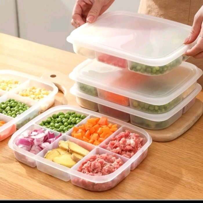 READY 4 SEKAT CEK FOTO KE DUA Food Storage Sekat ini sangat praktis buat kita untuk menyimpan berbagai makanan yg sisa sedikit atau bahan bumbu dapur yang sudah di potong atau di blender, bisa di simpan dalam 1wadah jd sangat Praktis saat kita masak dan tidak memakan tempat di kulkas dengan banyak kotak2.