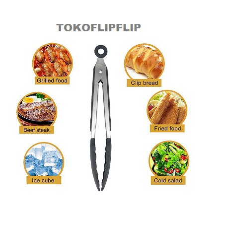 Detail FOOD TONGS SILICONE+STAINLESS/ CAPITAN KUE DAN GORENGAN TAHAN PANAS/ FOOD TONGS ANTI LENGKET MURAH