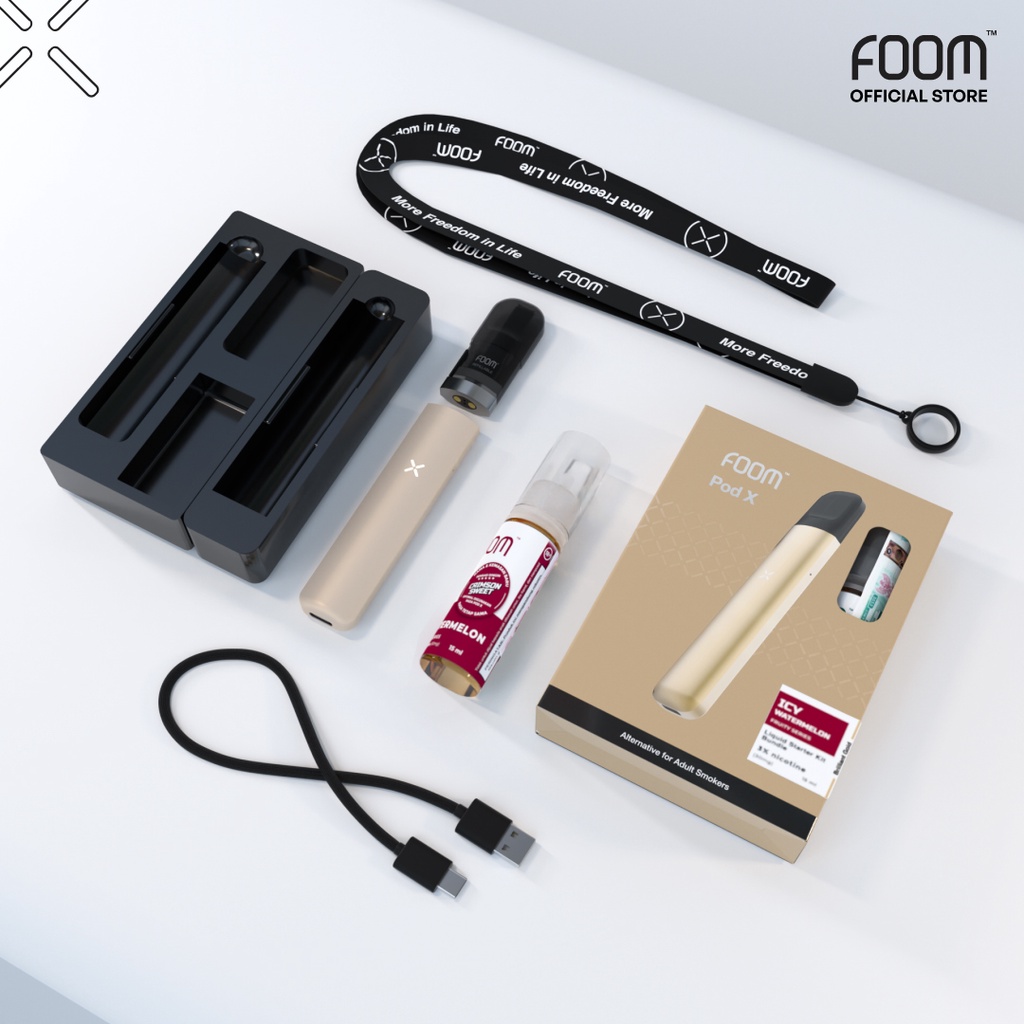 Package Includes: - 1 pcs Stick Device Pod X - 1 pcs Refillable Cartridge Pod X - 1 pcs Lanyard - 1 pcs Cable Charger Type C - 1 pcs Manual Book - 1 pcs 15 ml Liquid