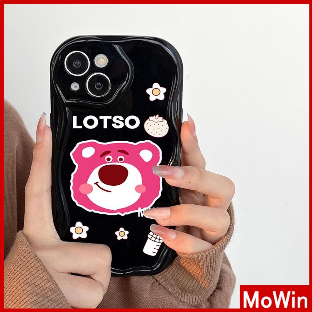 Handphone & Aksesoris > Casing & Skin > Casing & Skin Handphone > For iPhone 14 Pro Max iPhone Case 3D Curved Edge Wave Glossy Black TPU Airbag Shockproof Camera Cover Strawberry And Bear Compatible with iPhone 13 Pro max 12 Pro Max 11 xr xs