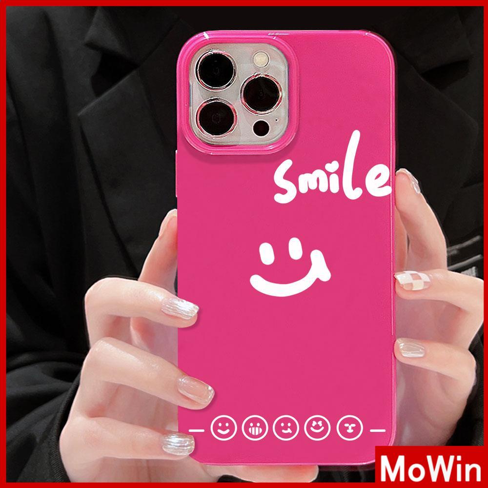 For iPhone 14 Pro Max iPhone Case Pink Glossy TPU Soft Case Shockproof Protection Camera Simple Smiley Compatible with iPhone 13 Pro max 12 Pro Max 11 xr xs max 7Plus 8Plus
