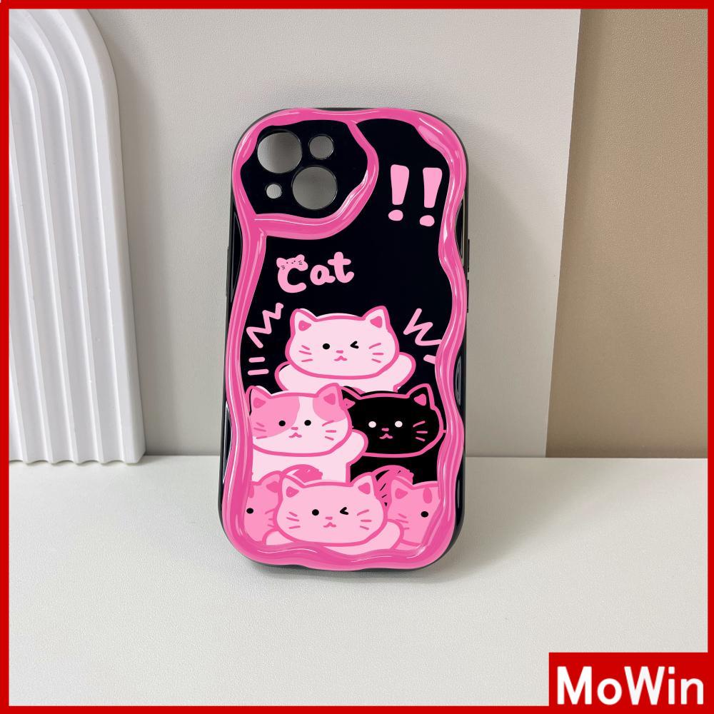 Handphone & Aksesoris > Casing & Skin > Casing & Skin Handphone > For iPhone 14 Pro Max iPhone Case 3D Curved Edge Wave Glossy Black TPU Airbag Shockproof Camera Cover Pink Cat Compatible with iPhone 13 Pro max 12 Pro Max 11 xr xs max 7Plus