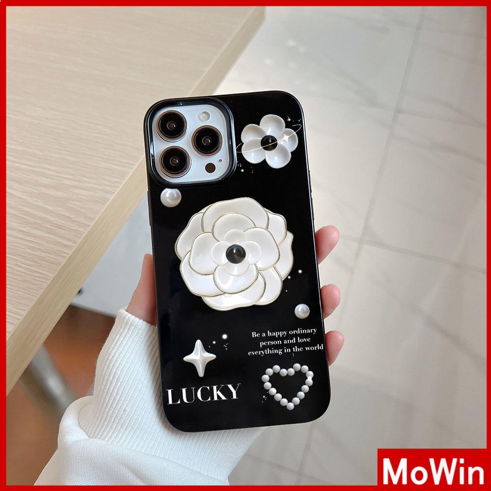 For iPhone 14 Pro Max iPhone Case Black Glossy TPU Soft Case Shockproof Protection Camera Luxury White Flower Compatible with iPhone 13 Pro max 12 Pro Max 11 xr xs max 7Plus 8Plus