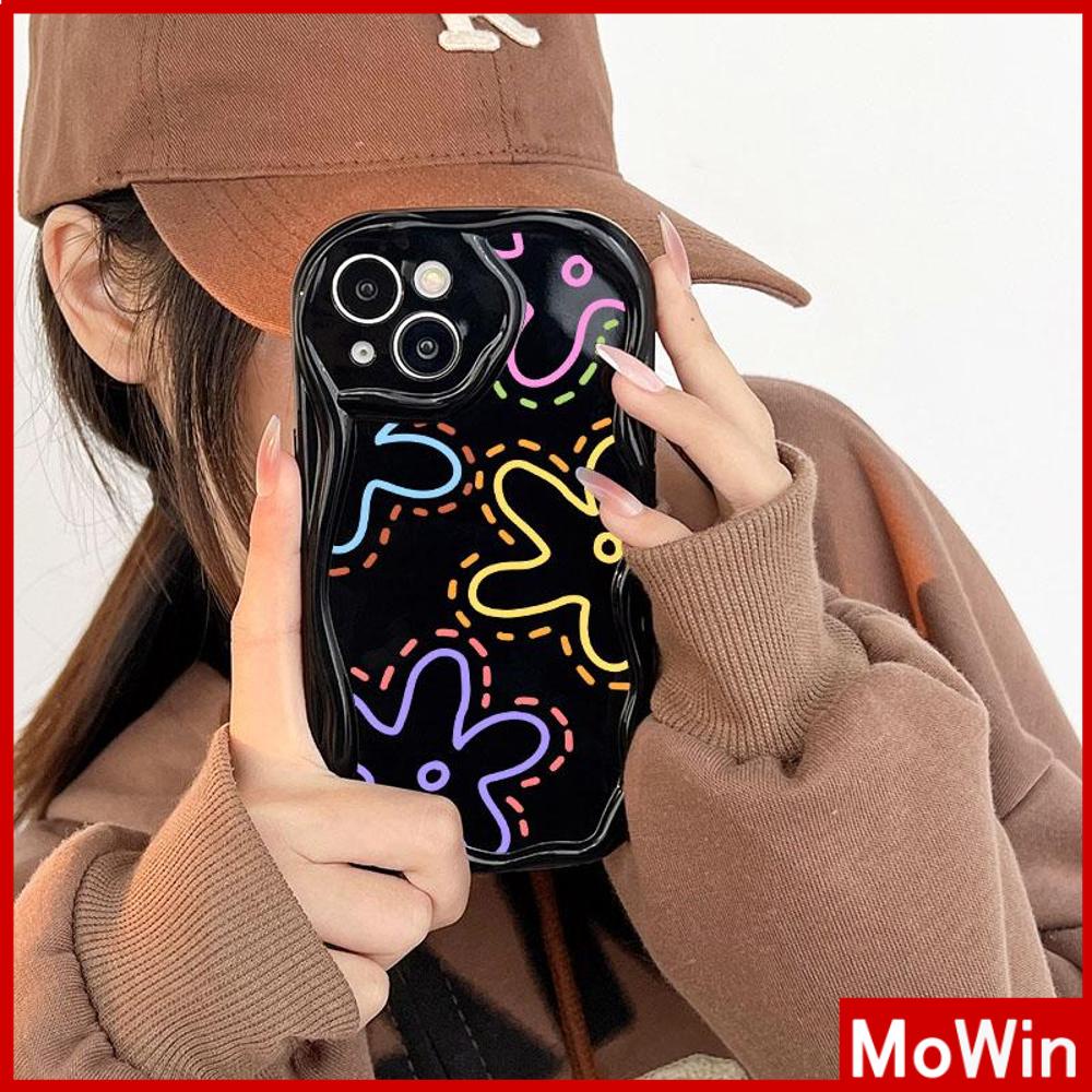 Handphone & Aksesoris > Casing & Skin > Casing & Skin Handphone > For iPhone 14 Pro Max iPhone Case 3D Curved Edge Wave Glossy Black TPU Airbag Shockproof Camera Cover colored flower Compatible with iPhone 13 Pro max 12 Pro Max 11 xr xs max 7Plus