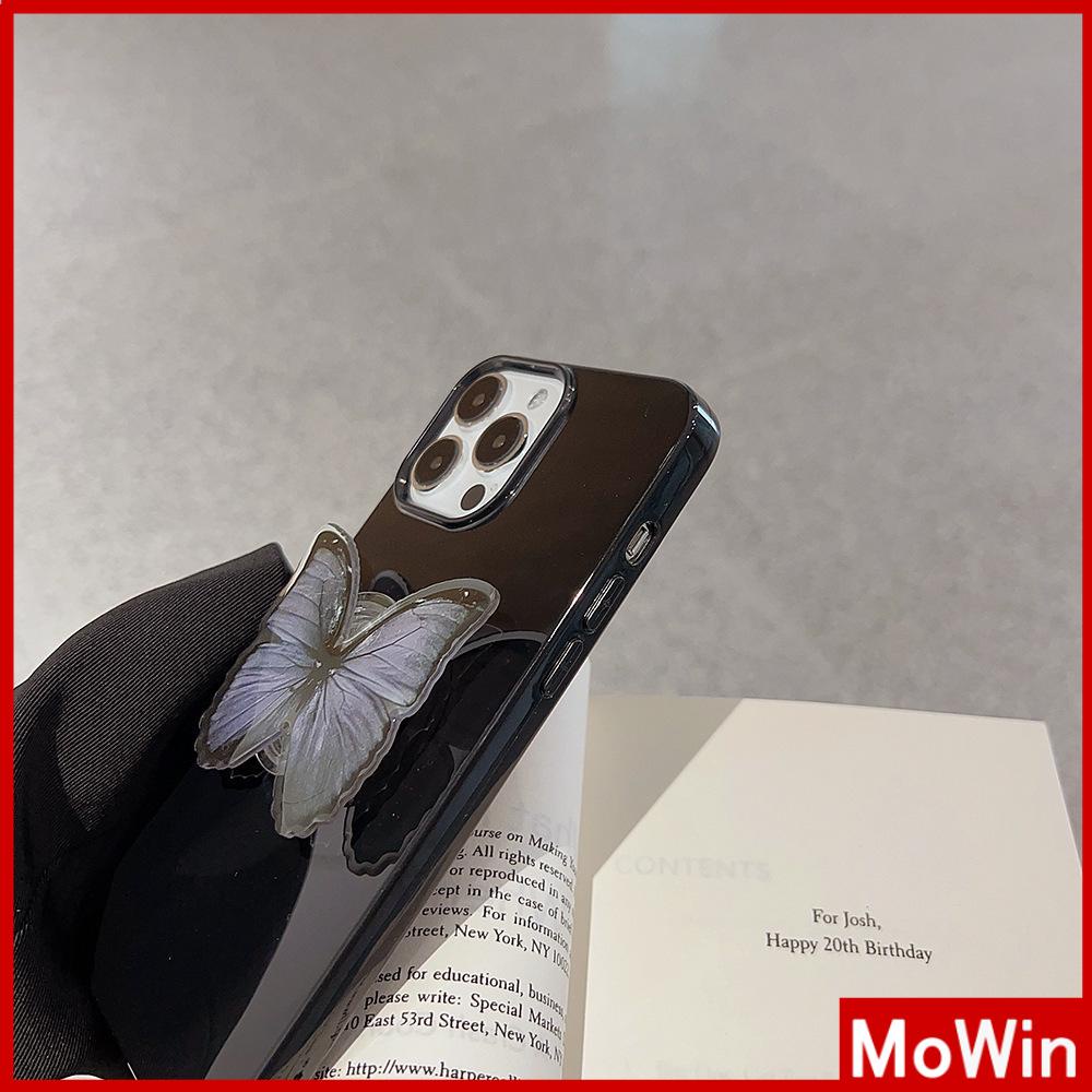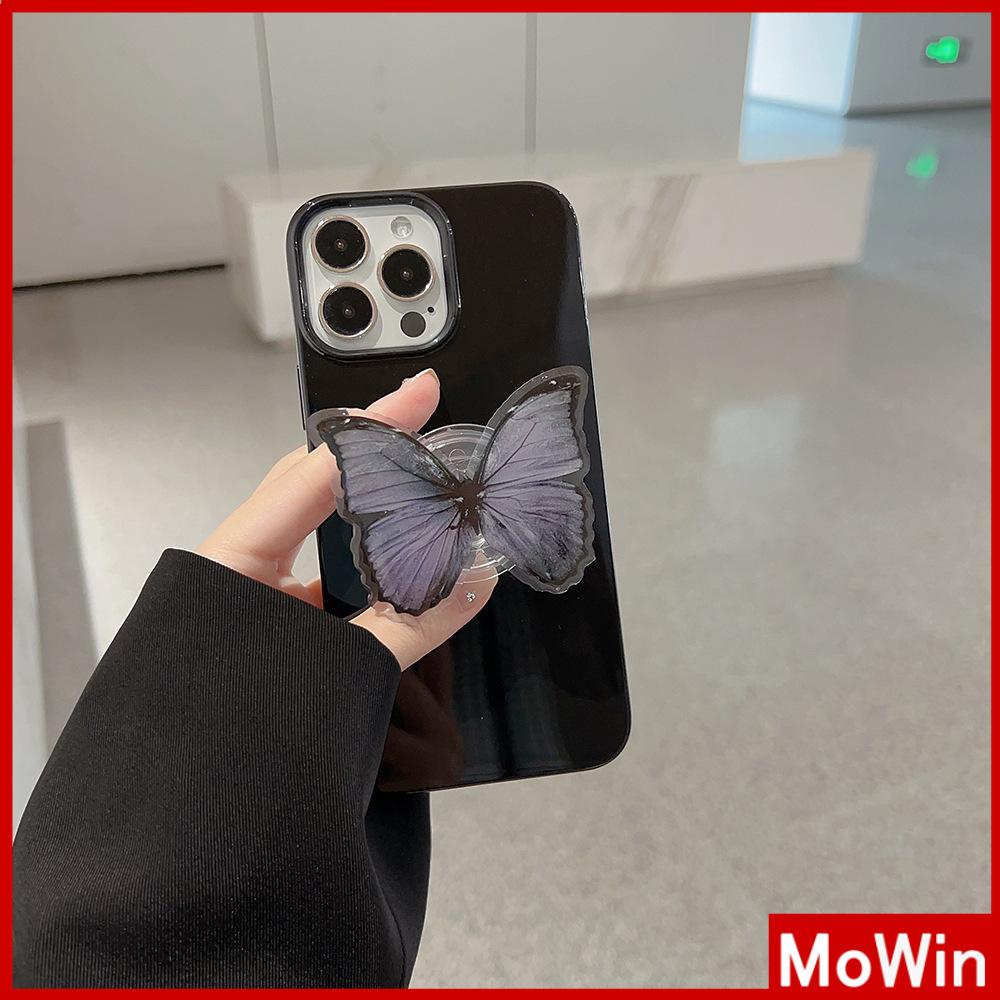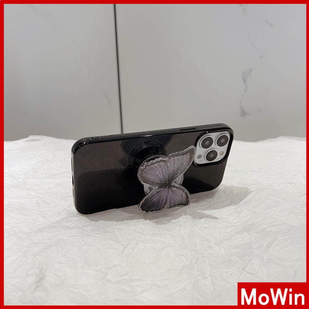 For iPhone 14 Pro Max iPhone Case With Butterfly Folding Holder Clear Grip Black Glossy TPU Soft Case Shockproof Compatible with iPhone 13 Pro max 12 Pro Max 11 xr xs max 7Plus