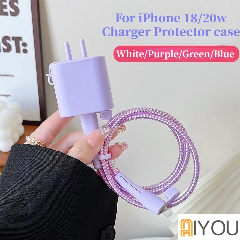 Handphone & Aksesoris > Kabel, Charger, & Konverter > Casing, Penggulung & Pengikat Kabel > 【For iPhone Type-C to Lightning】Charger Cover Protector Silicone Cable Accessory iP-18/20w USB Charger Plug Cable Protector for Phone USB Cable Line Protection Case.