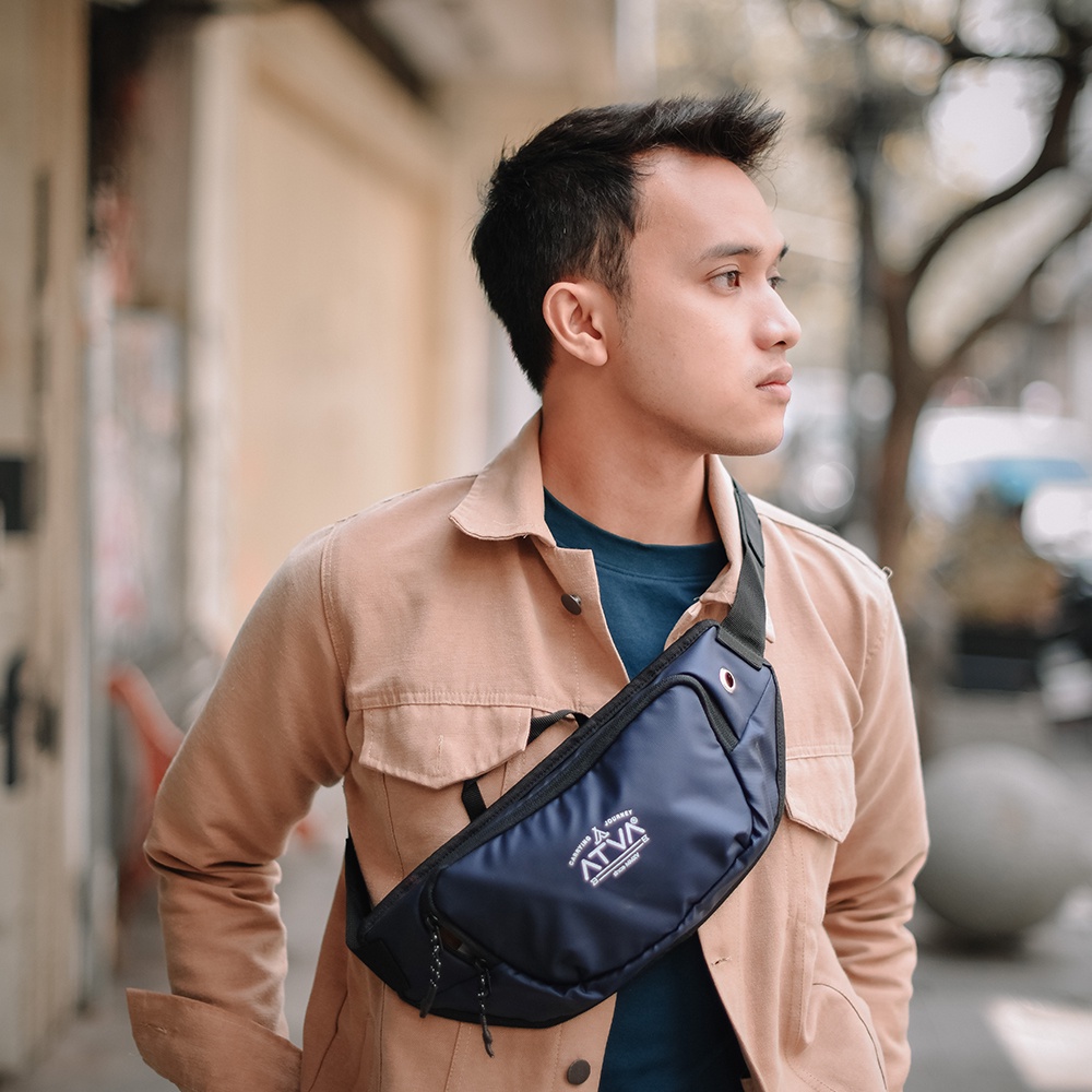 FORCE NAVY ORIGINAL x ATVA Tas Selempang Biru Dongker Casual Pria Waterproof Waistbag Jalan Santai Main Hangout Nongkrong Waist Bag Distro Remaja Dewasa Daily Simple Sling Bag Premium Mini Slingbag Tas Slempang Outdoor Kecil Pinggang Bahu Dada Branded