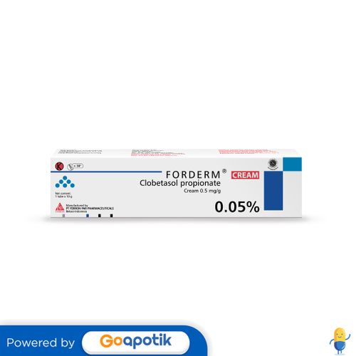 Deskripsi : PENGGUNAAN OBAT INI HARUS SESUAI PETUNJUK DOKTER Pengobatan jangka pendek dermatosis yang resisten, misalnya pada psoriasis yang tidak termasuk plak psoriasis yang mengalami penyebaran luas, eksema rekalsitran, liken planus diskoid, lupus eritematosus diskoid. | Komposisi : Tiap gram krim mengandung clobetasol propionate 0.5 mg | Dosis : ATURAN PAKAI HARUS SESUAI DENGAN PETUNJUK DOKTER.Cuci dan keringkan pada area yang sakit, kemudian oleskan 1-2 kali sehari pada area yang sakit tersebut. Lama terapi tidak boleh dari 4 minggu | Indikasi : Pengobatan jangka pendek dermatosis yang resisten, misalnya pada psoriasis yang tidak termasuk plak psoriasis yang mengalami penyebaran luas, eksema rekalsitran, liken planus diskoid, lupus eritematosus diskoid. | Perhatian Khusus : Ibu hamil dan menyusui, hindari menggunakan obat pada wajah, ketiak, maupun selangkangan tanpa anjuran dokter, tidak digunakan pada anak <12 tahun | Kemasan : Tube, 10 gram krim | NIE : DKL0234600229A1