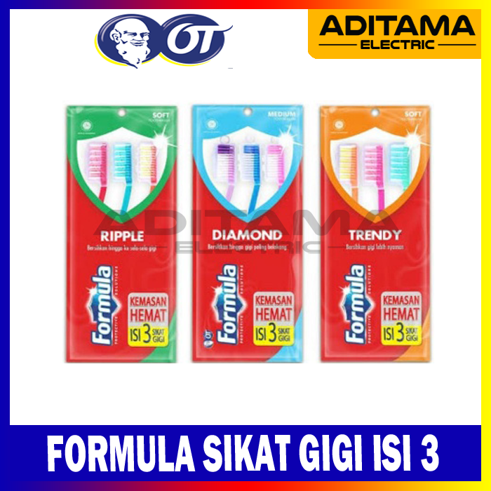 SIKAT GIGI FORMULA ISI 3 FAMILY PACK TOOTHBRUSH DIAMOND TRENDY RIPPLE MEDIUM SOFT KESEHATAN PERAWATAN DIRI MULUT