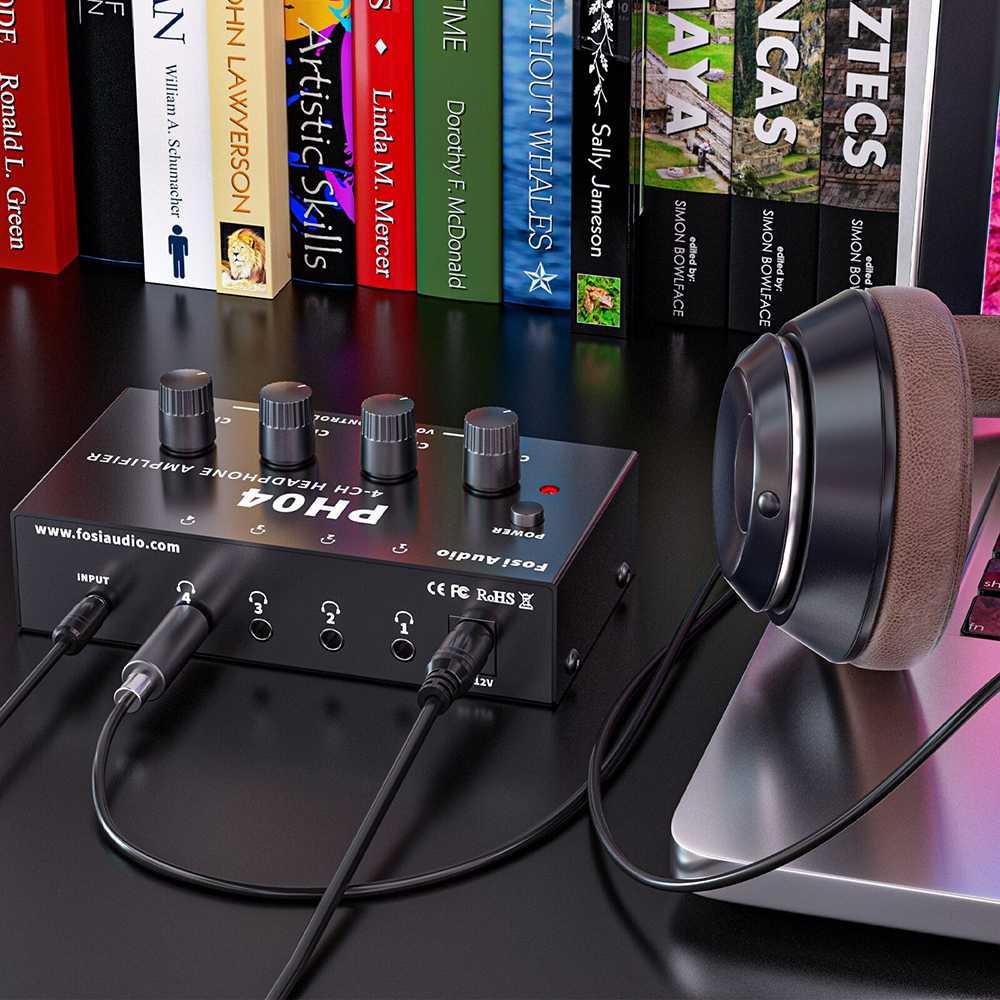 4 Channel Amplifier ini hadir dengan 4 buah channel headphone sehingga Anda dapat mengatur 4 suara headphone secara terpisah.