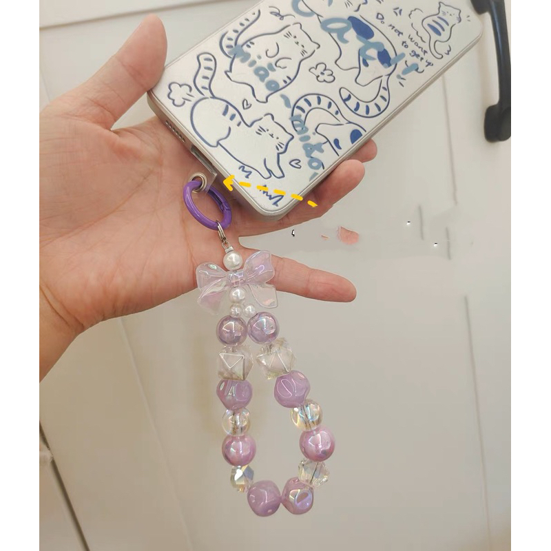 Handphone & Aksesoris > Handphone & Tablet Aksesoris > Tali & Gantungan Handphone > Foxy Pearl Bow Cantolan Gantungan HP Universal Airpods Phone Key Chain Lanyard Lucu