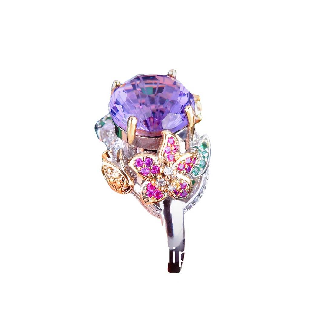 Aksesoris Fashion > Cincin > [FRA] Cincin Berlian Ungu Potongan Kerja Hias Tangan Dua Warna Emas Dengan Bunga Warna-Warni Dan Membuka Cincin Harta Karun Berwarna