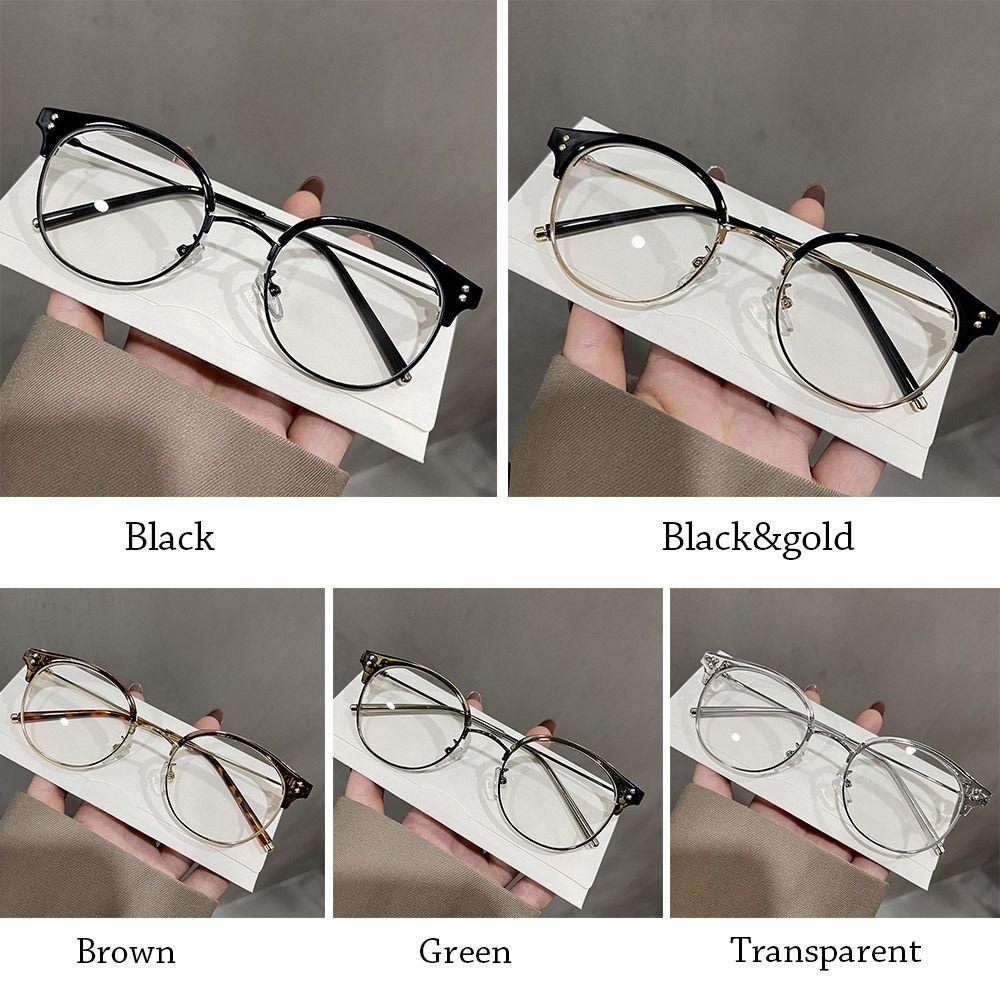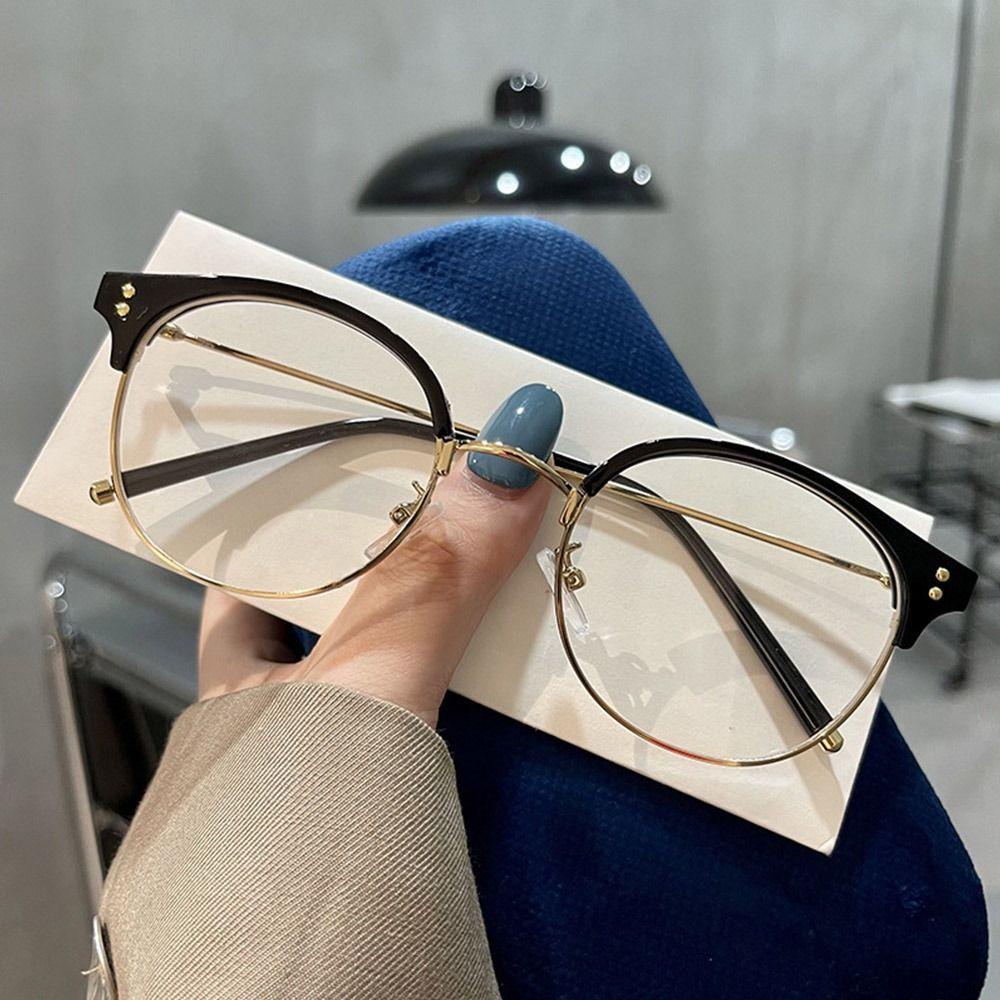 2.Perlu dicatat bahwa sedikit perbedaan warna harus diterima karena cahaya dan layar. Kacamata Optik Bingkai Kacamata Anti Blue-ray Logam Setengah Bingkai Bulat Bening Wanita Fashion Pria