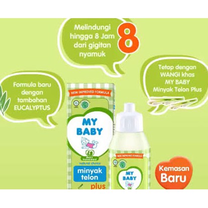 Keunggulan: --Ekstrak Citronella dan Chamomile Minyak Telon Plus dari My Baby memiliki kandungan yang terbuat dari bahan-bahan alami sehingga sangat aman untuk kulit bayi yang masih begitu rentan. Bahannya yang lembut tidak akan menimbulkan iritasi pada kulit buah hati Anda, dan aromanya dapat menenangkan si kecil terutama sebelum tidur. --Melindungi dari Gigitan Nyamuk Tidur yang nyenyak adalah hal yang sangat penting bagi stamina anak. Minyak Telon Plus dapat menjaga kehangatan tubuh agar tidurnya lebih nyenyak, sekaligus melindunginya dari gigitan nyamuk yang mengganggu dan berbahaya. Oleskan pada tubuh bayi agar si kecil bisa tidur dengan lelap. --Mudah Dibawa & Disimpan Minyak Telon Plus dibuat dalam kemasan yang praktis. Bentuk kemasan praktis ini bertujuan untuk mempermudah penyimpanan, baik di rumah ataupun saat bepergian bersama keluarga tercinta. Pastikan kehangatan dari Minyak Telon Plus terus berada di dekat buah hati Anda.