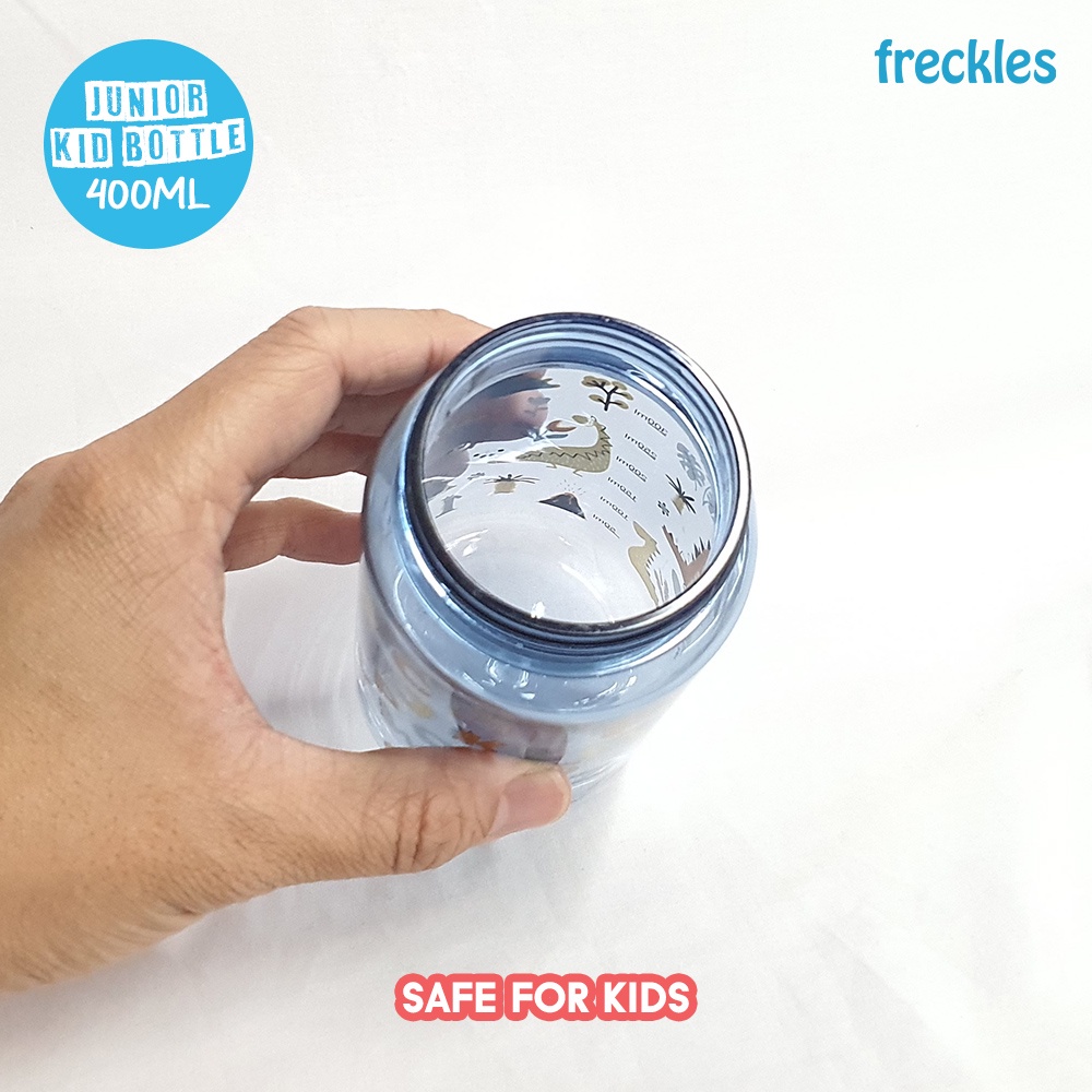 "Freckles Junior Kid Bottle dibuat dengan bukaan mulut yang lebar untuk memudahkan pengisian dan pembersihan serta tutup anti bocor untuk menjaga anak-anak tetap terhidrasi.