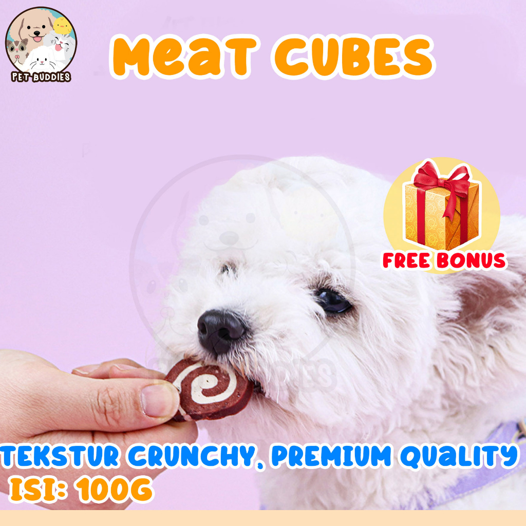 Video perkenalan produk [FREE BONUS]Meat Cube 100g Snack Dental Chew Kucing/Anjing. Sumber: Shopee.
