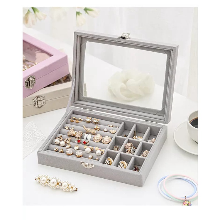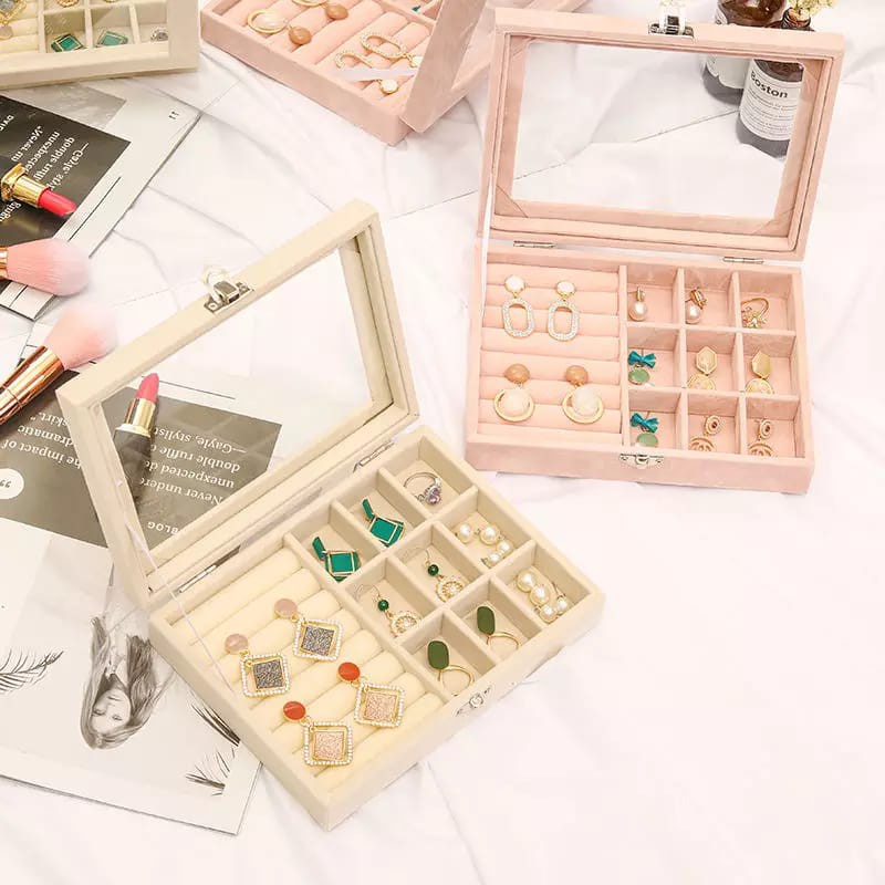 Detail FREE BUBBLE!!! Kotak Persegi Kotak Perhiasan Kaca Travel Jewelry Cincin Anting Kalung Cincin Box Penyimpanan Emas Tidak Mudah Pecah