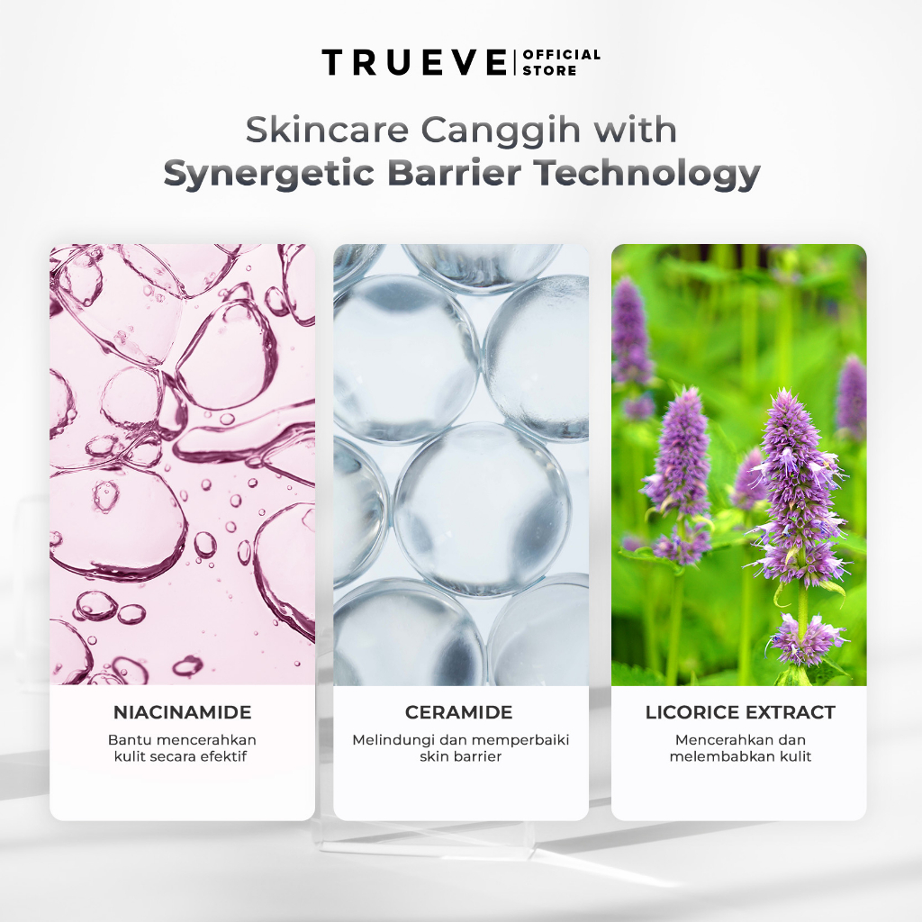 Trueve Gentle Foaming Facial Cleanser diformulasikan dengan busa yang lembut sehingga dapat membersihkan kulit tanpa membuatnya kering dan seperti tertarik. Cocok untuk semua jenis kulit termasuk kulit sensitif.