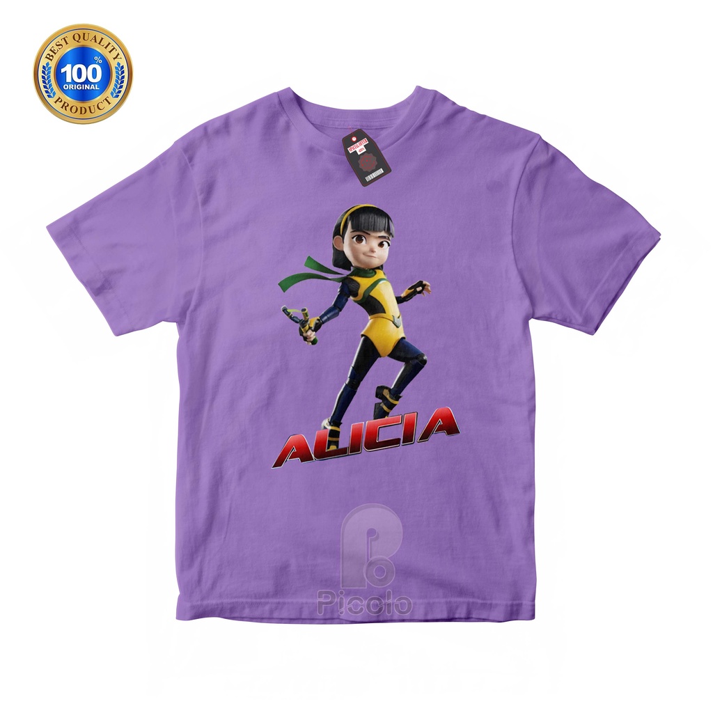 Detail (FREE NAMA) BAJU KAOS ATASAN ANAK MOTIF KARAKTER ALICIA EJEN ALI Bahan COTTUN