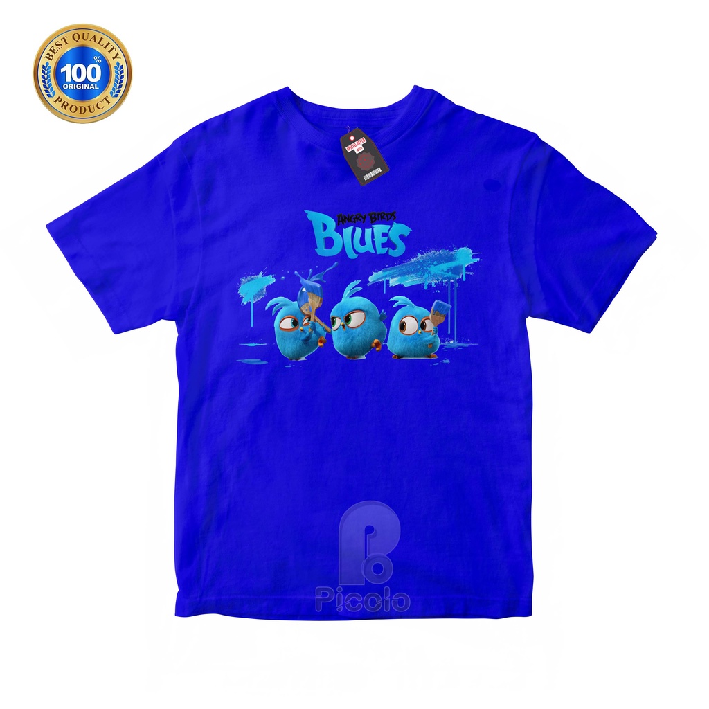 (FREE NAMA) BAJU KAOS ATASAN ANAK MOTIF ANGRY BIRDS BLUES UNISEX Bahan COTTUN