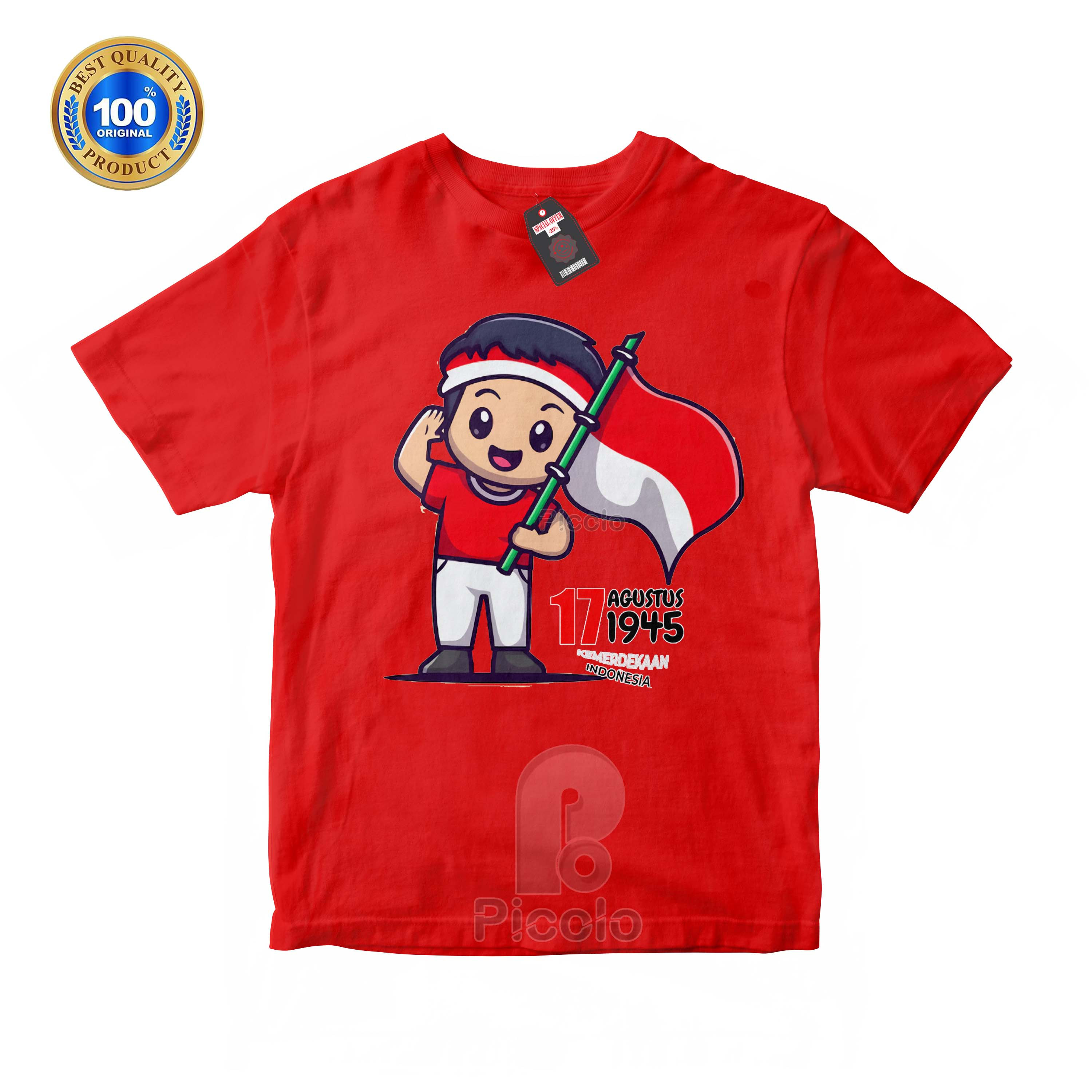 Detail (FREE NAMA) BAJU KAOS ATASAN ANAK MOTIF ANIMASI KEMERDEKAAN 78th 17 AGUSTUS 1945 Bahan COTTUN