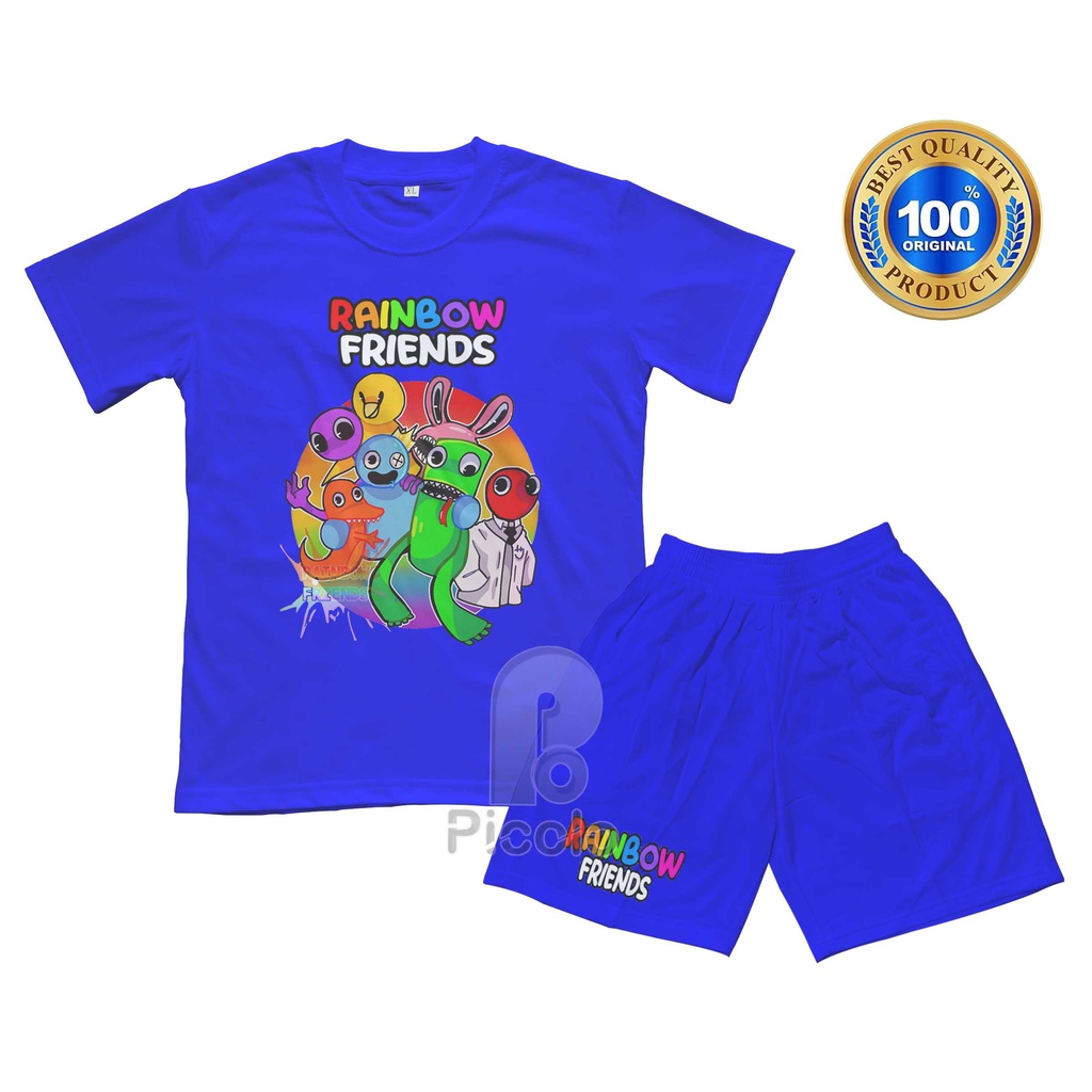 Detail (FREE NAMA) BAJU KAOS SETELAN ANAK MOTIF KARAKTER RAINBOW FRIENDS UNISEX