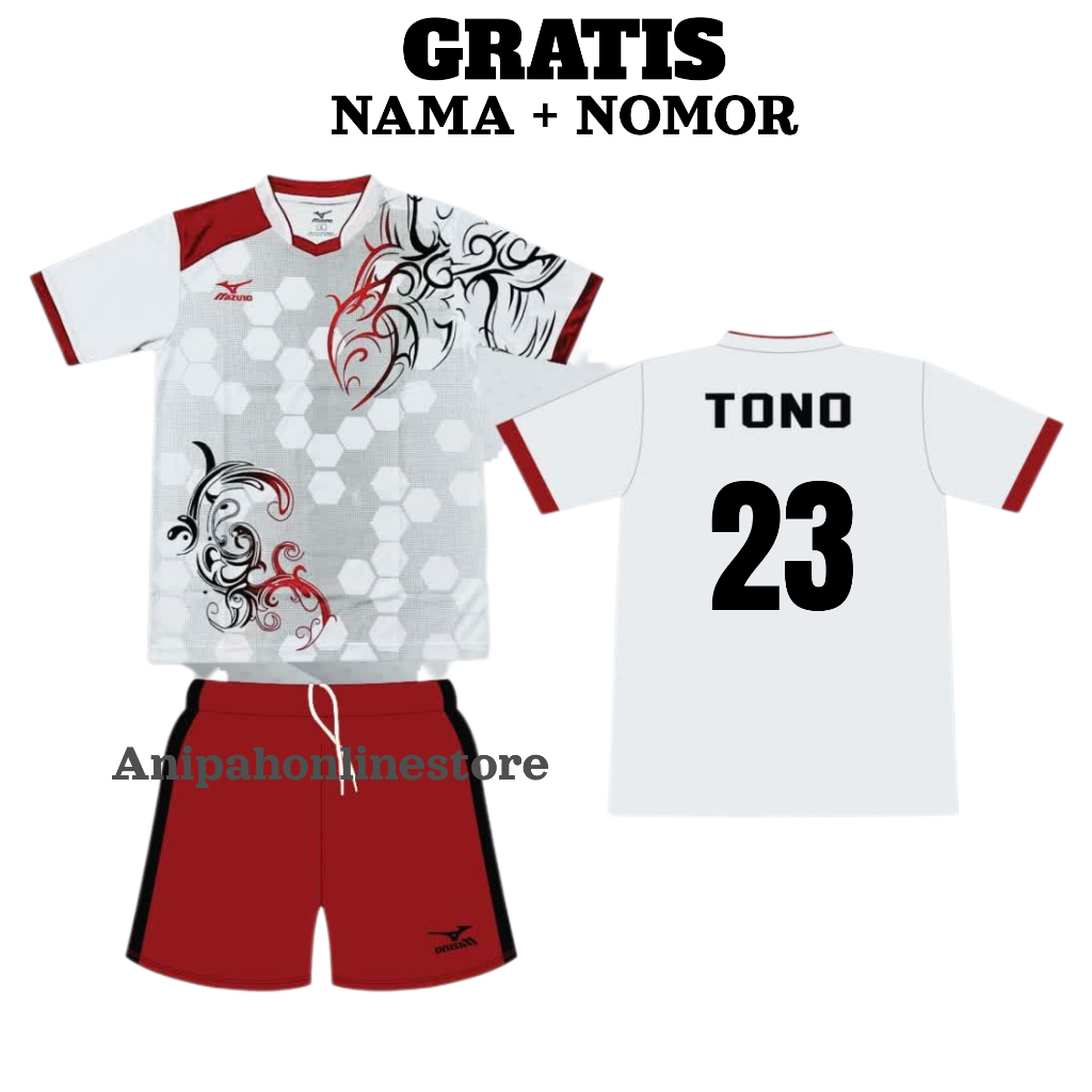 Detail free nama + nomor punggung baju olahraga dewasa jersey voli pria wanita kaos badminton