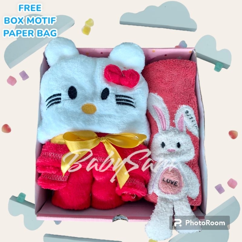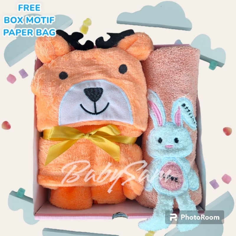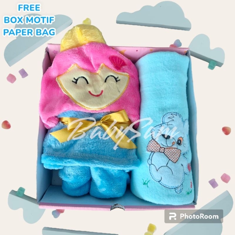 🌺Hampers Jumbo 3 》Selimut bulu karakter Topi (uk 70 X 102 Cm) 》Parcel Sabun+ Tile 》Jumper bayi 》Handuk Playroom (uk 50 X 100 Cm) 》Box dan Pita 》Ucapan 》Bubble Wrap