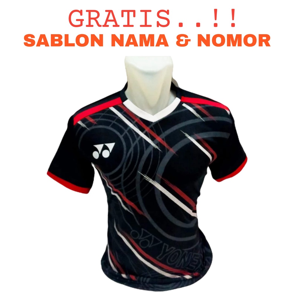 Detail ( FREE SABLON NAMA & NOMOR ) Baju olahraga badminton bulutangkis bola futsal volly atasan olahraga terbaru