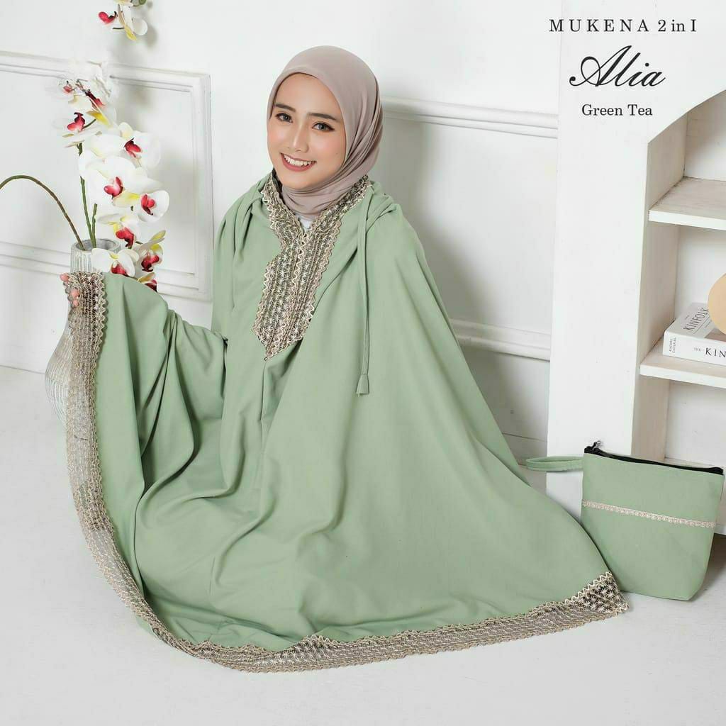 Detail FREE TASBIH DIGITAL MUKENA DEWASA MUKENA 2 IN 1 MUKENA ALIA renda tile mewah bisa COD