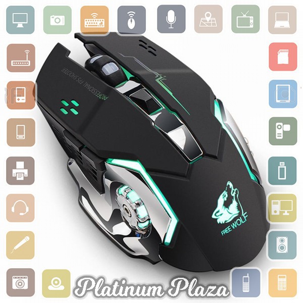 Free Wolf Wireless Gaming Mouse LED Light 1800 DPI - X8||Mouse gaming dari Free Wolf ini hadir dengan desain body mouse yang gagah layaknya mouse gaming pada umumnya. Desain ergonomis membuat mouse ini sangat nyaman digunakan, ditambah dengan sensor mouse yang akurat maka performa gaming Anda akan semakin meningkat.|Features|Wireless Gaming Mouse|Tidak perlu rusuh denga kabel-kabel kusut dan mengganggu pergerakan saat bermain game karena mouse ini telah menggunakan teknologi wireless sehingga bermain game menjadi lebih nyaman.||Ergonomic Design|Mouse gaming Free Wolf ini memiliki body mouse dengan bahan material berkualitas yang kuat dan ergonomis sehingga nyaman digunakan. Cocok digunakan untuk berbagai style genggaman mouse seperti palm, claw dan fingertip.||1800 DPI Sensor|Dengan sensor 1800 DPI membuat mouse ini cocok digunakan untuk Anda yang membutuhkan mouse dengan pergerakan tinggi dan presisi. Cocok digunakan untuk bermain game FPS dan MOBA yang membutuhkan tingkat keakurat tinggi agar skill shot Anda selalu kena musuh.||Charging Technology|Teknologi pengisian daya dengan dapat dilakukan dengan charging, penggunaan daya yang hemat membuat mouse ini dapat bertahan lama.||Silent Light|Bukan mouse gaming tanpa ada LED yang membuat penampilan mouse semakin gagah.||Package Contents|Barang-barang yang anda dapat dalam kotak produk:|1 x Free Wolf Wireless Gaming Mouse LED Light 1800 DPI - X8|1 x USB Cable|1 x User Manu