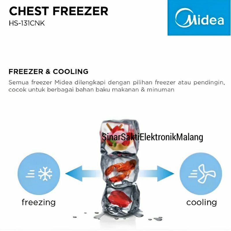 # ongkir : Daerah kota Malang ( 20rb - 100rb ++ tergantung lokasi dan besar barang MIDEA Chest Freezer HS131CNK🏵️ di design dengan interior LAMP AND KEY LOCK sehingga makanan dan bahan-bahan masakan terjamin kesegarannya.system Flass Cooling dimana sistem pendinginan sangat cepat dan bebas dari CFC, hemat energi.