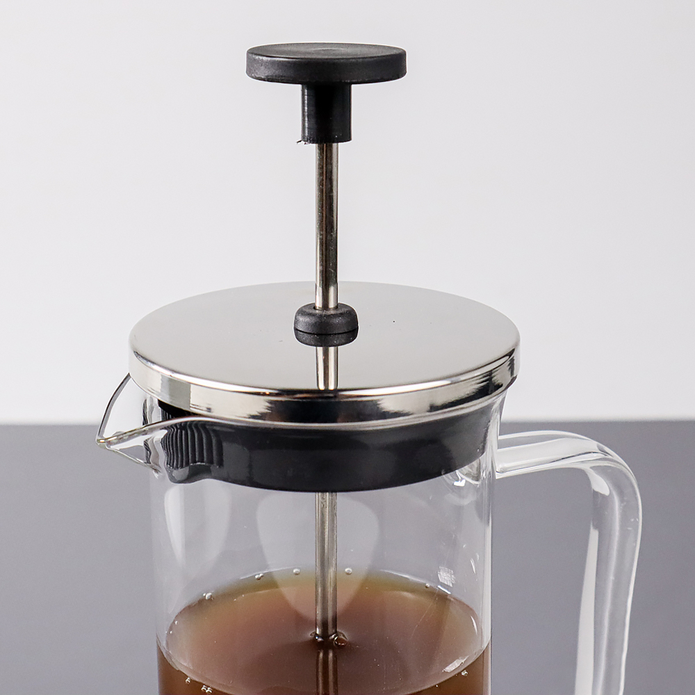 Fitur Kaca Transparan yang Mudah Diilihat Pot kopi french press ini terbuat dari bahan kaca transparan sehingga Anda dapat melihat proses pembuatan kopi dengan mudah.
