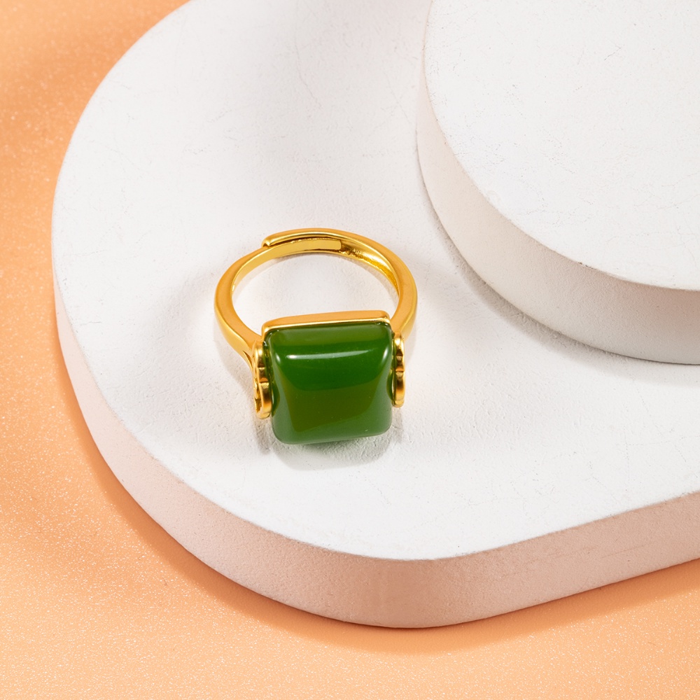 Aksesoris Fashion > Cincin > French Retro Metal Opening Adjustable Ring Kepribadian Perempuan Temperamen Sederhana Dan Serbaguna Hetian Jade Ring Perhiasan Gadis Seksi