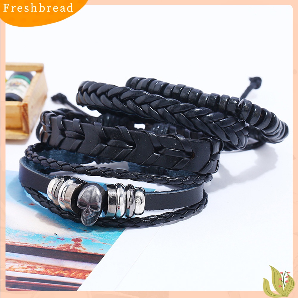 Detail [Fresh] 4Pcs / Set Gelang Tangan Strap Kepang Motif Kepala Tengkorak Ala Vintage untuk Pria / Club