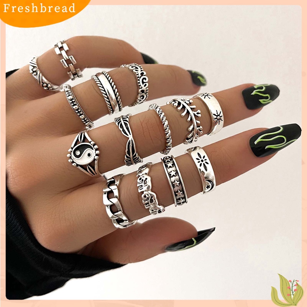 Detail < Freshbread > 14 Pcs Knuckle Rings Stackable Tai Chi Wanita Indah Semua Pertandingan Jari Cincin Perhiasan Aksesoris