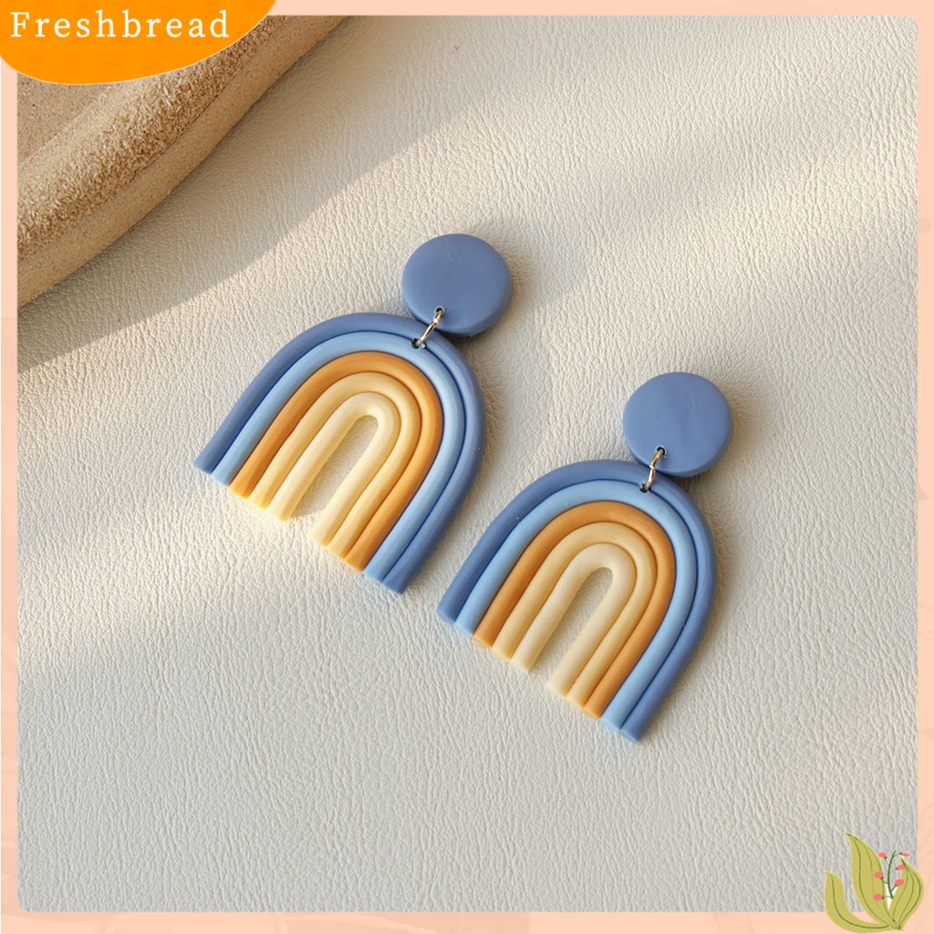 < Freshbread > 1pasang Anting Drop Geometris Bentuk U Clay Polimer Warna-Warni Semua Cocok Anting Tusuk Bohemian Untuk Pacaran