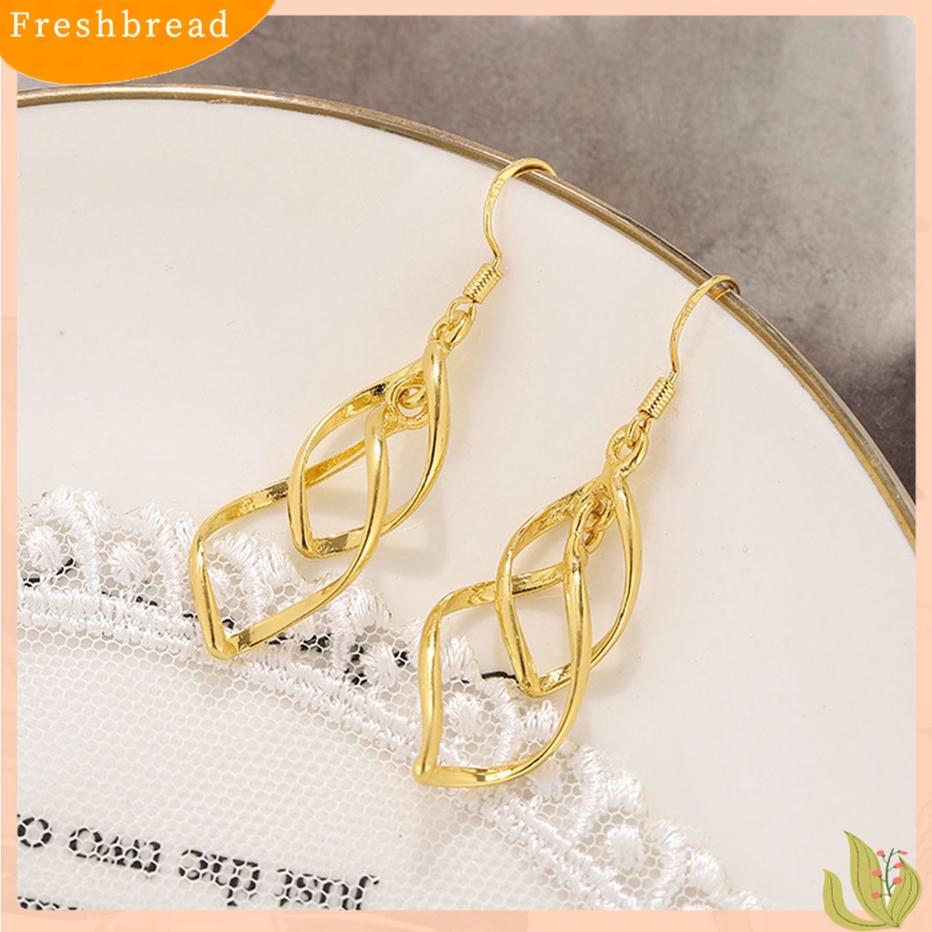 Detail < Freshbread > 1pasang Anting Kait Linear Swirl Bohemian Perhiasan Halus Tahan Lama Drop Earrings Untuk Pakaian Sehari-Hari