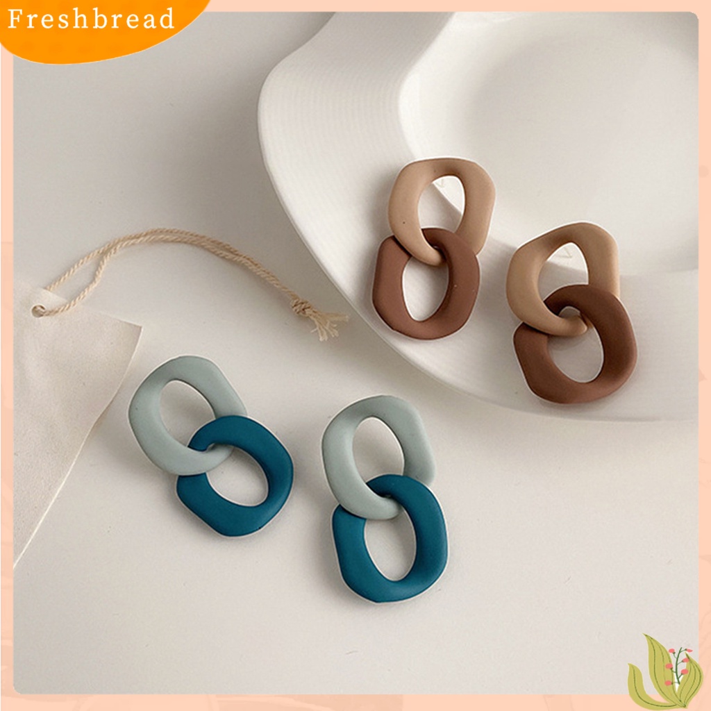 Detail < Freshbread > 1pasang Anting Retro Hollow Belah Ketupat Bentuk Tidak Teratur Anting Warna Kontras Untuk Wanita